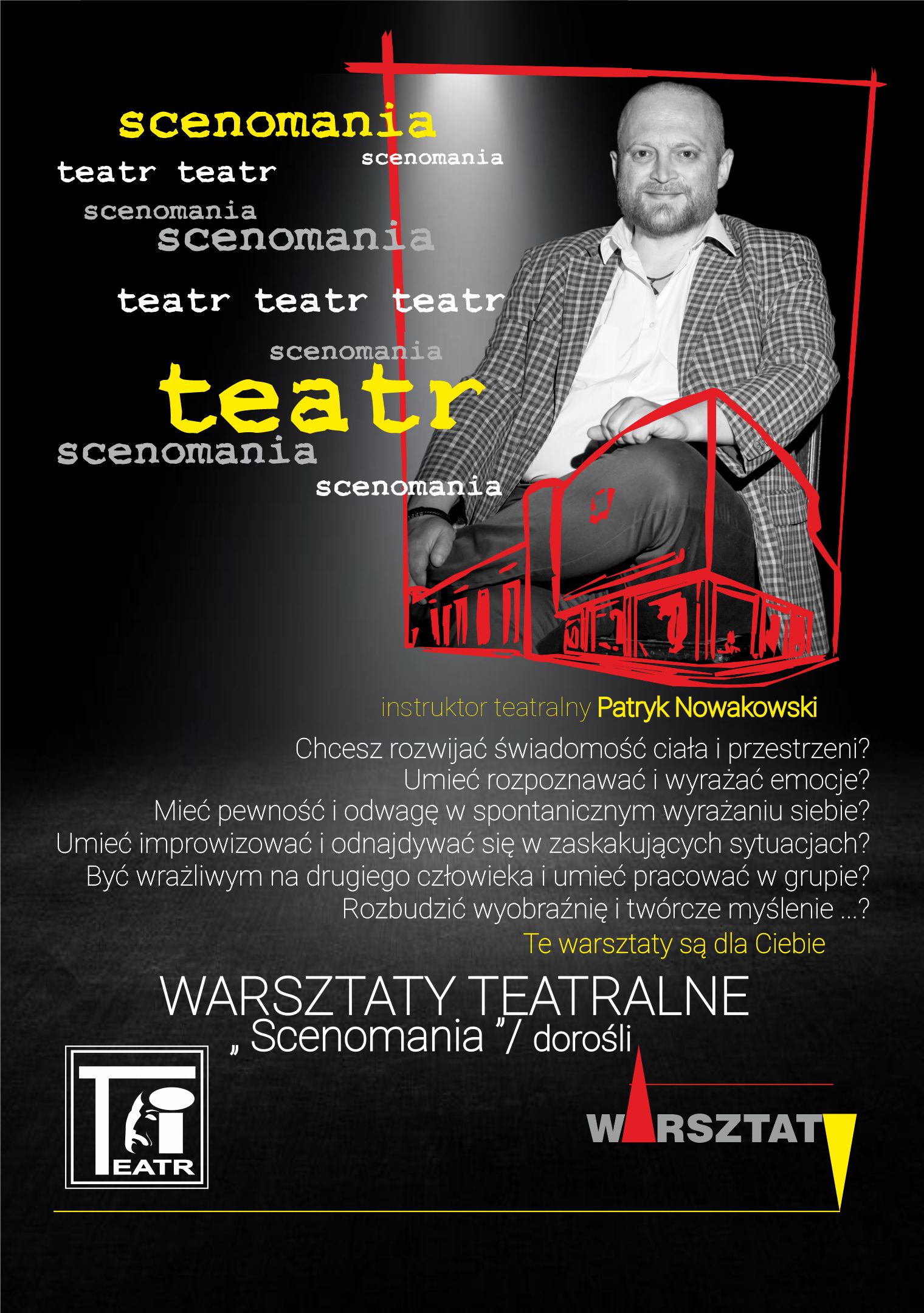 Jeżeli chcesz rozwijać : świadomość ciała i przestrzeni, umiejętność pracy w zespole, wrażliwość na drugiego człowieka, umiejętność rozpoznawania i wyrażania emocji, właściwą emisję głosu, pewność i odwagę w spontanicznym wyrażaniu siebie, umiejętność improwizacji i odnajdywania się w zaskakujących sytuacjach, rozbudzanie wyobraźni i twórczego myślenia … TE ZAJĘCIA SĄ DLA CIEBIE!