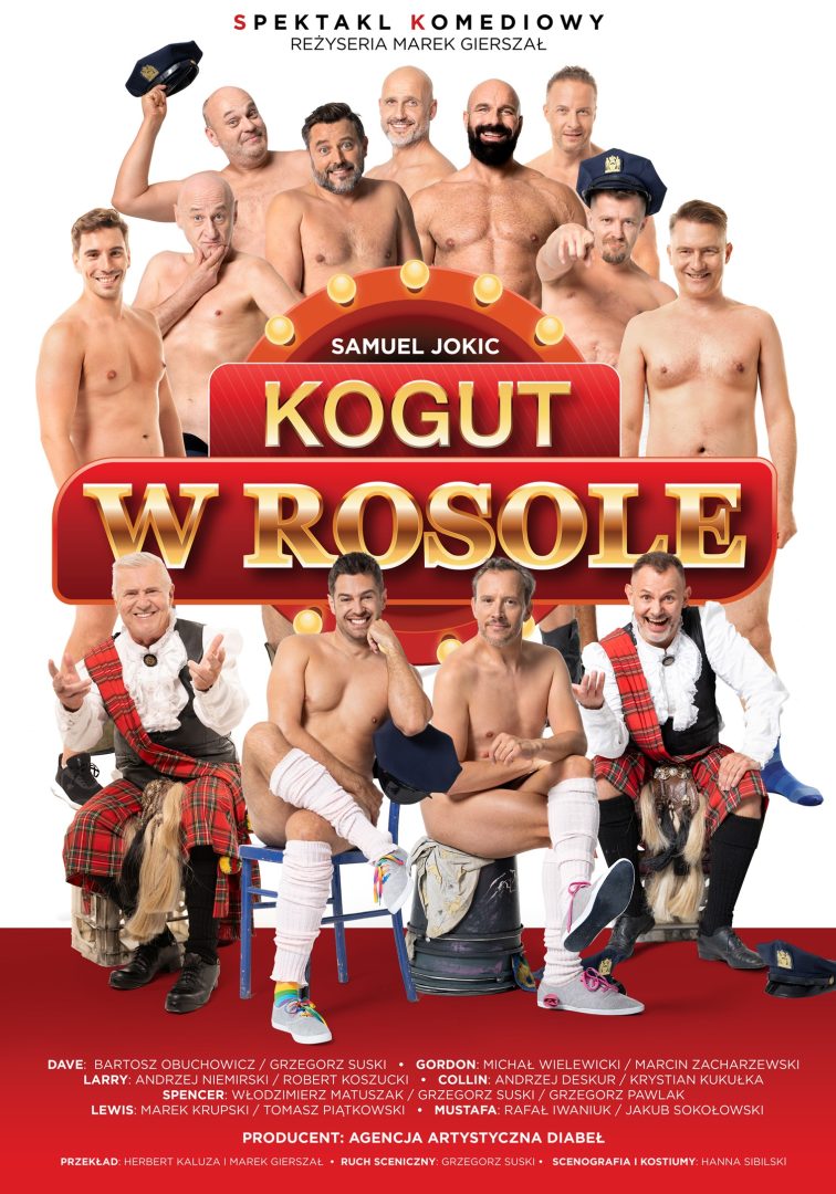 Zapraszamy na sztukę „Kogut w rosole”. Przedstawienie jest teatralną wersją brytyjskiego hitu kina światowego „The Full Monty” w reżyserii Petera Cattaneo o polskim, filmowym tytule: „Goło i wesoło”.